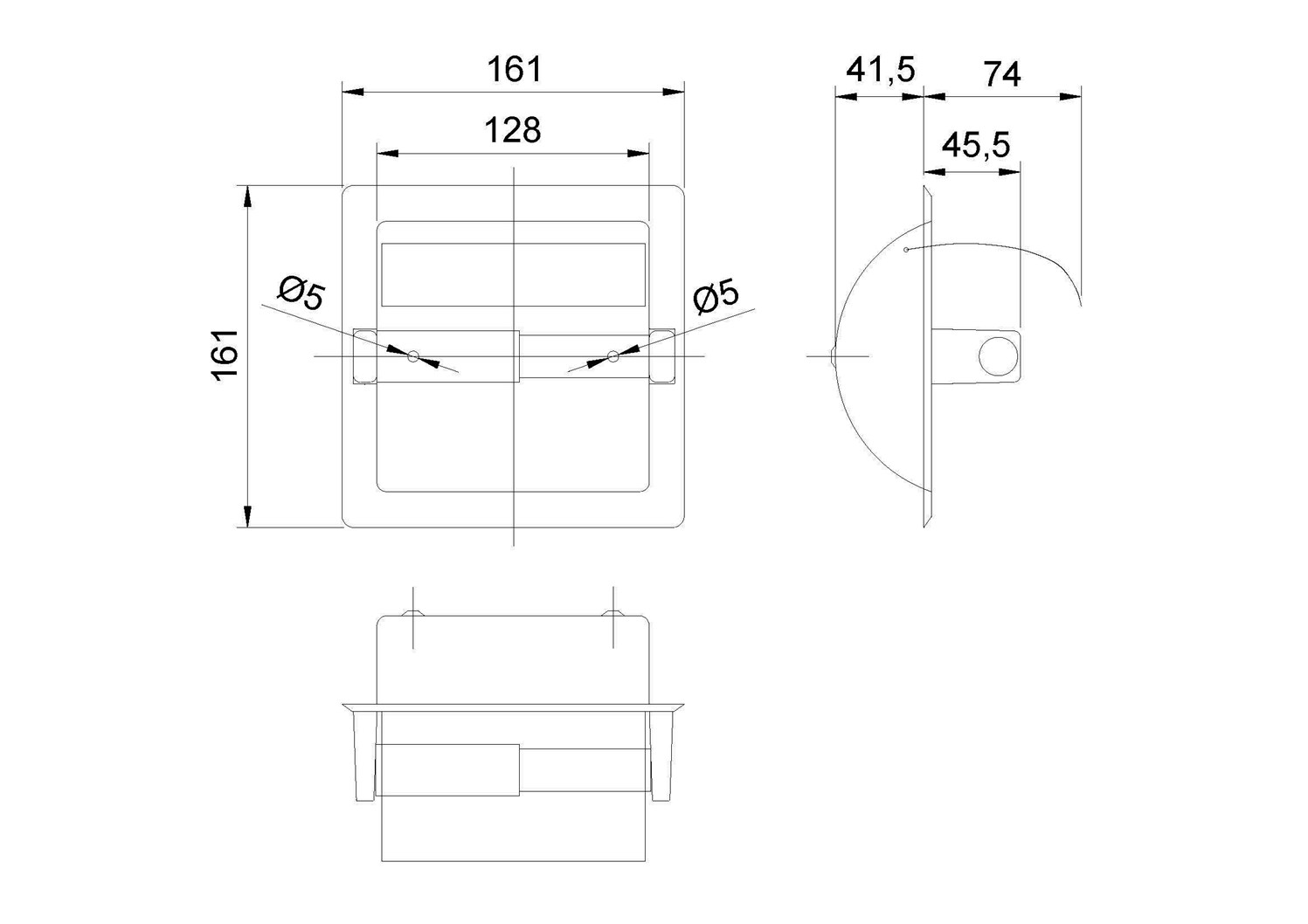 Встраиваемый диспенсер для 1 рулона туалетной бумаги с крышкой выполнен из нержавеющей стали и подходит для рулонов не более 70 метров.