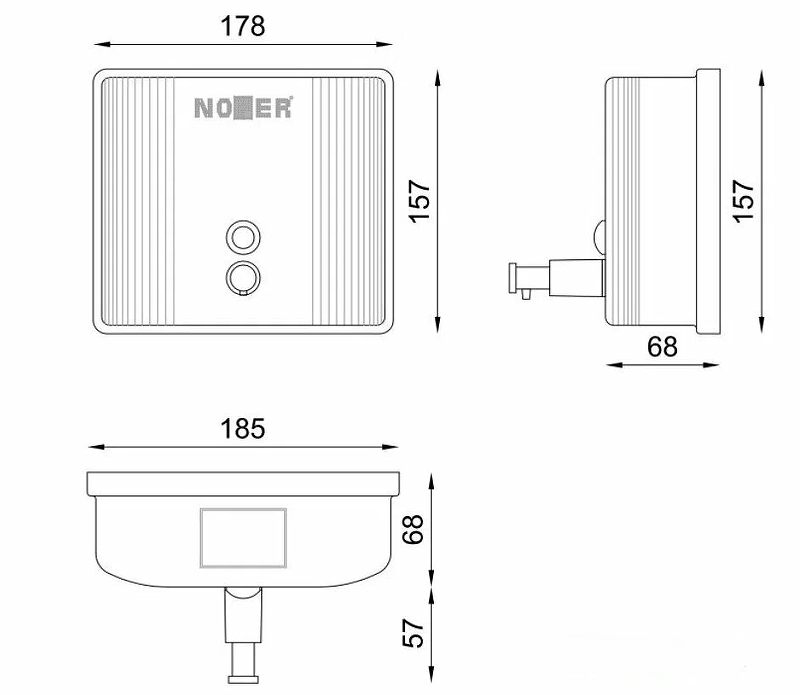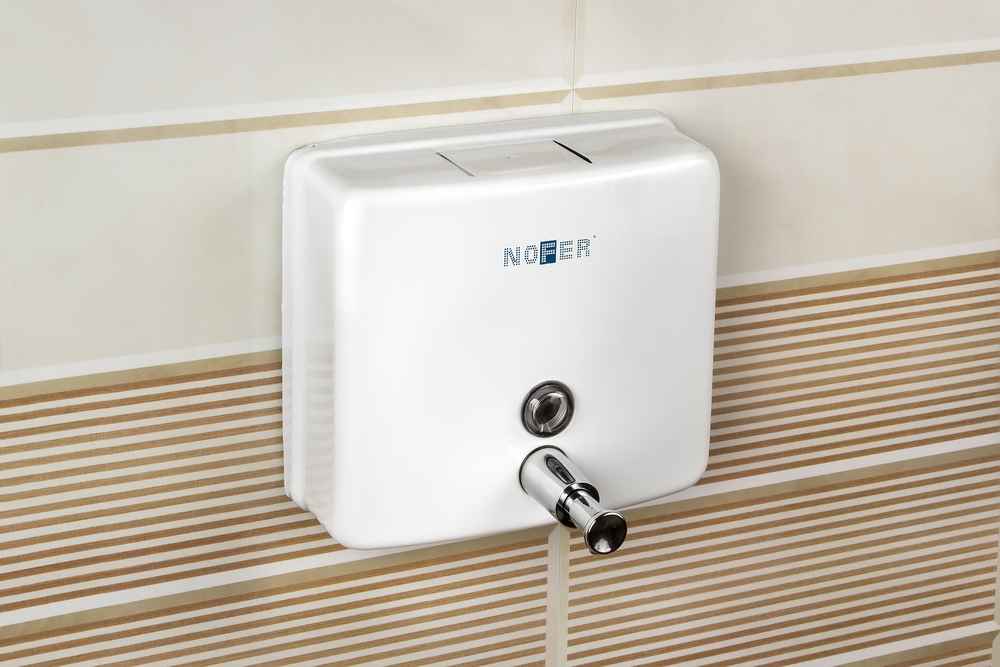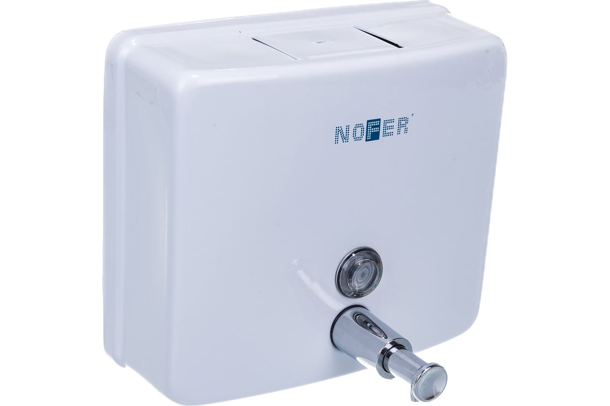 Nofer Дозатор для жидкого мыла, подвесной, цвет: белый 03004.W и другие сантехнические изделия бренда характеризует надежность, высокое качество и продолжительный срок службы. Изделие в стилистике минимализм впечатляюще будет смотреться в различных цветовых решениях помещения.