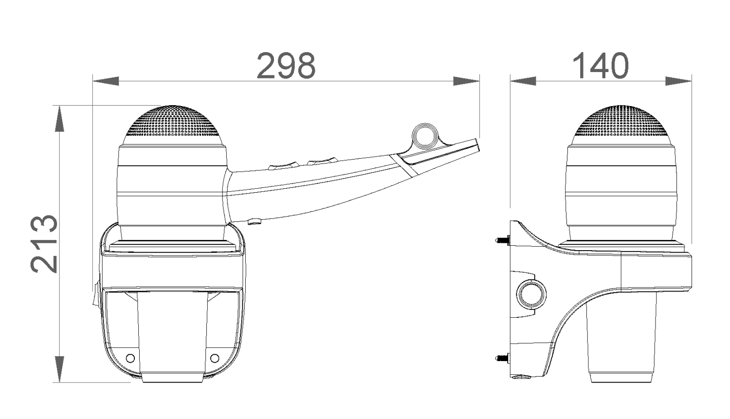 Фен антивандальный электрический с регулировкой температуры. Данный аппарат имеет 6 режимов работы, которые регулируется по скорости потока воздуха, а также по температуре воздуха. Обе величины имеют 3 уровня регулировки. Корпус фена ударопрочный и выполнен из ABS пластика и нержавеющей стали. Данный аппарат предназначен для мест с очень большой проходимостью, такие как гостиницы, фитнес центры, аквапарки и т.п. Корпус фена сделан из нержавеющей стали AISI 304 толщиной 1,2 мм, этому фену практически не страшны падения и удары об плитку, столещницу и т.п., задняя часть фена также сделана из нержавещей стали и прочно закреплена к основному корпусу.