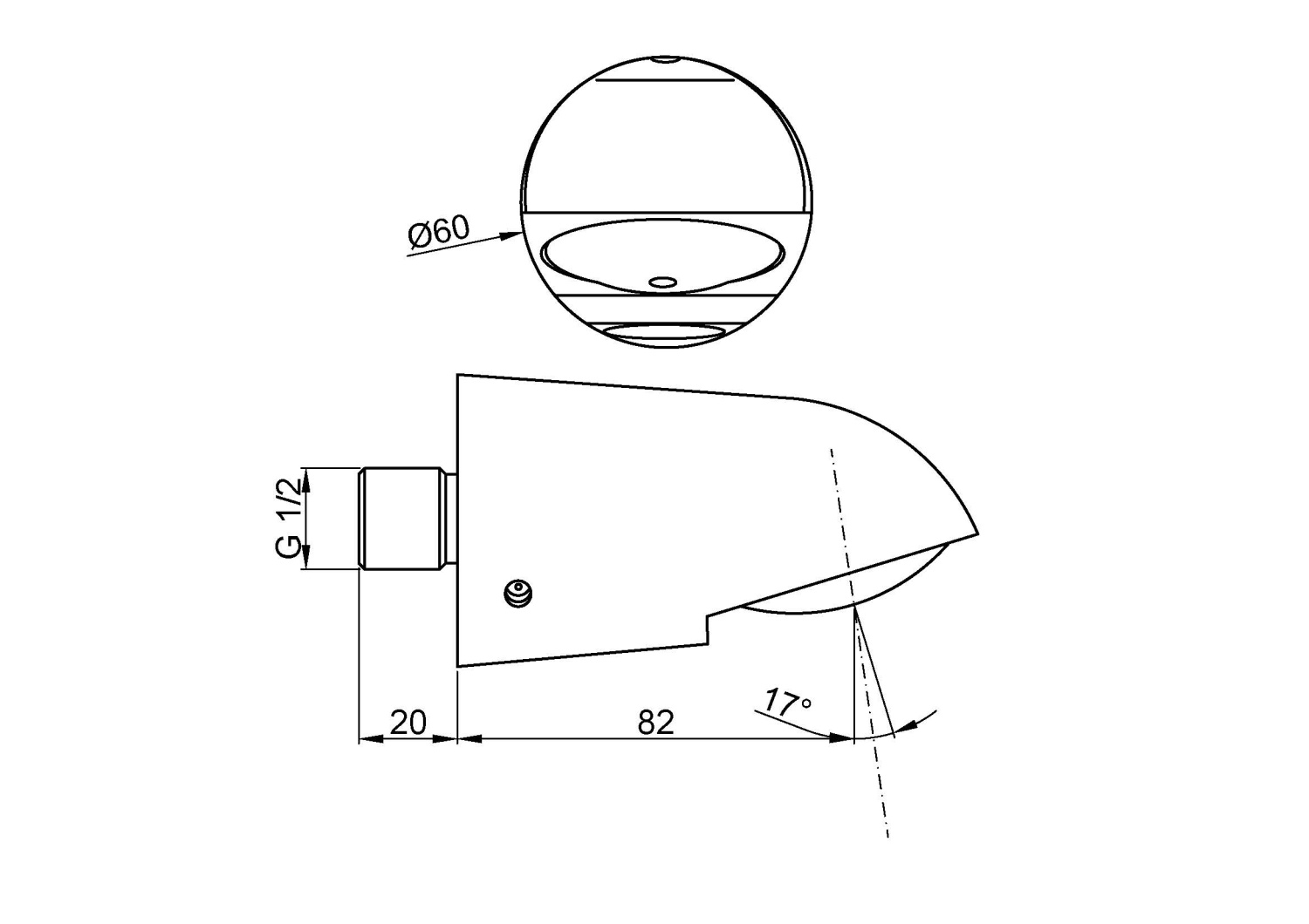 Излив антивандальный для душа предназначен для установки в стену. Подключение воды 1/2. Устройство имеет излив пол углом 17 градусов.