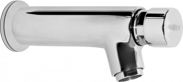 Nofer Кран для раковины настенный нажимной, цвет: хром 07440.N и другие сантехнические изделия бренда характеризует надежность, высокое качество и продолжительный срок службы. Изделие в стилистике минимализм впечатляюще будет смотреться в различных цветовых решениях помещения.