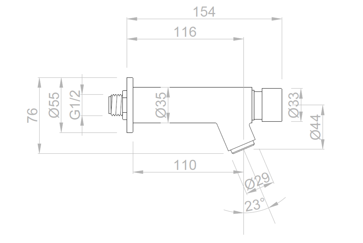 Кран воды с нормальной пульсацией по времени Настенный монтаж c ограничителем расхода 6 л / мин. «Стандарт» Задержка времени: 7 ± 3 секунды при 3 бар (не подлежит изменению) Материал: детали из хромированной латуни CW617N и пластмассы POM.