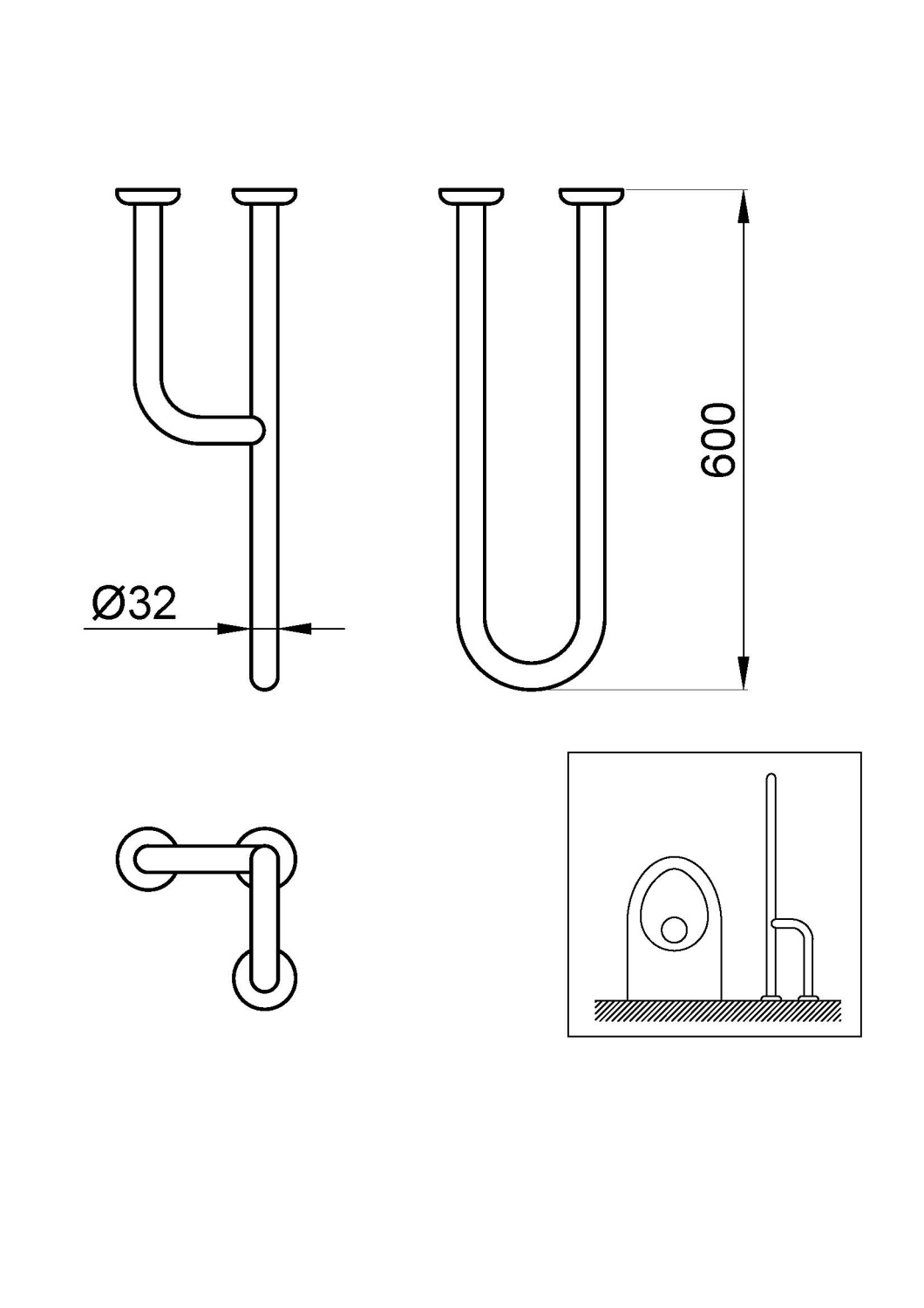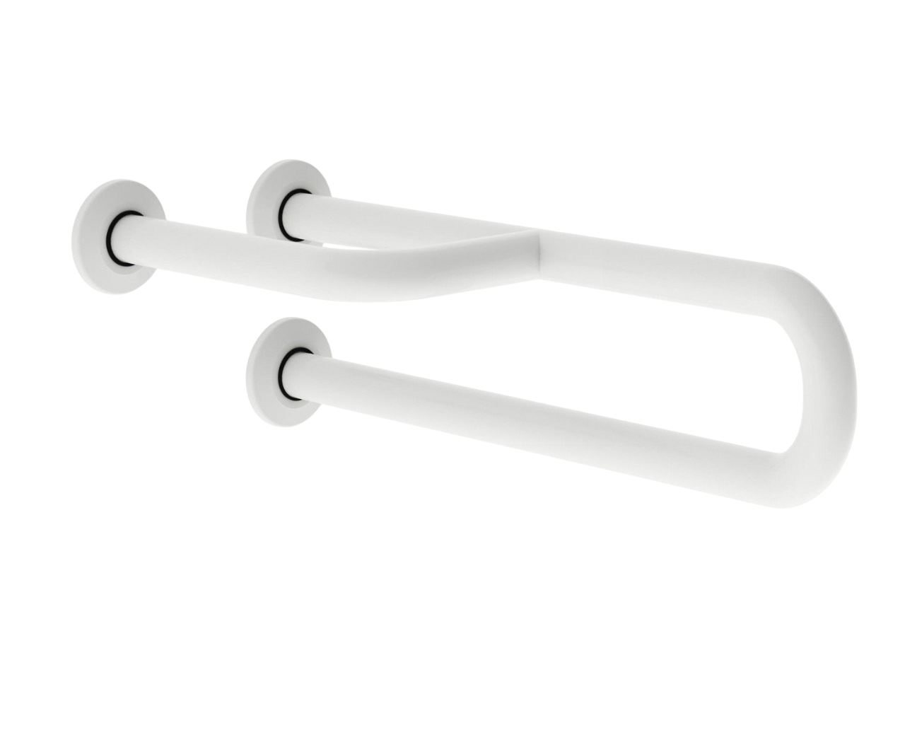 Поручень полукруглый правый с тремя точками опоры выполнен из нержавеющей стали AISI 304. Три точки опоры гарантируют предельную прочность и готовность выдержать любую нагрузку, белый. Диаметр Ø 32 мм, толщина 1,5 мм. 38 мм от стены.