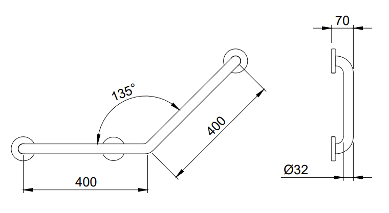 Поручень настенный под углом 135. 400х400 Nofer 15161.B из нержавеющей стали глянцевый.