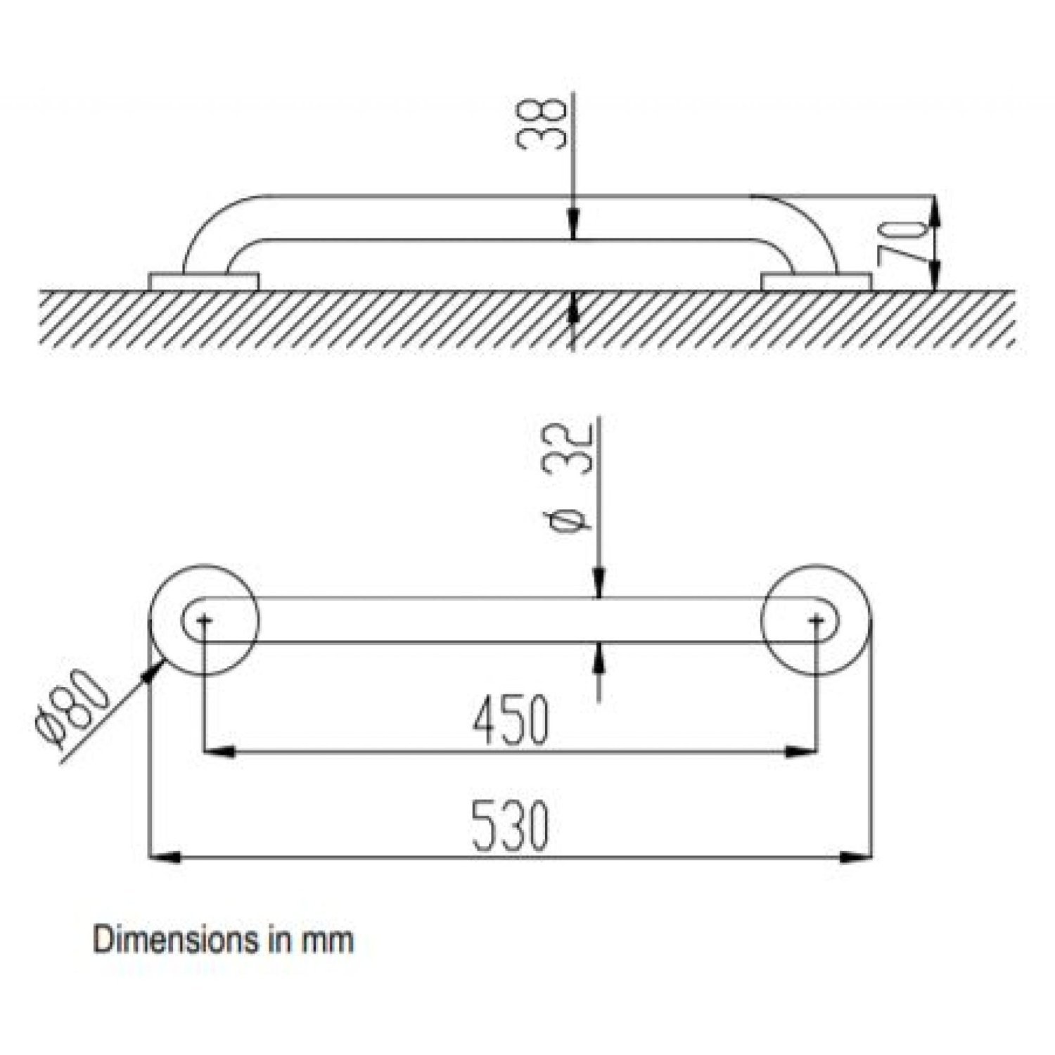 Поручень прямой опорный для крепления на стену, черный матовый. Подходит для поддержки в раковинах, туалетах, душах и ваннах.Предназначен для людей с ограниченными возможностями. Изготовлен из нержавеющей стали AISI 304. Две опорные точки. Длина (между центрами опор): 450 мм. Диаметр Ø 32 мм, толщина 1,5 мм. 38 мм от стены. Рекомендуемая высота установки 70-75 см от пола. Крепления включены в комплект.