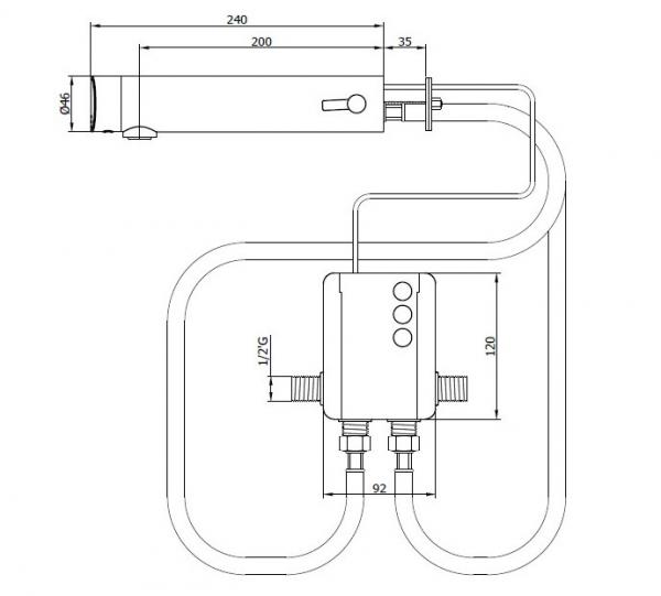 Смеситель сенсорный для настенного монтажа изготовлен их хромированной латуни и оборудован лазерным сенсором. В комплекте с устройством поставляются подводки для воды 1/2. Питание от батареек или от сети.