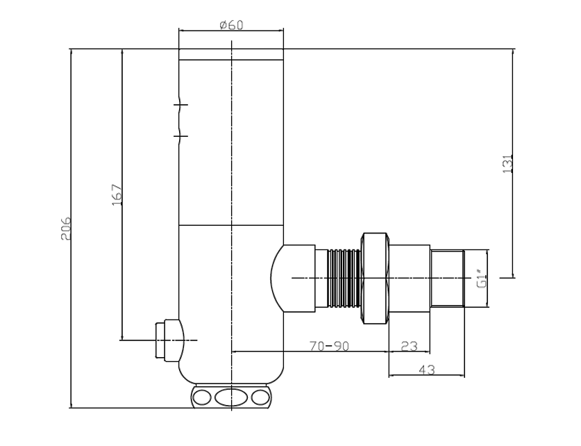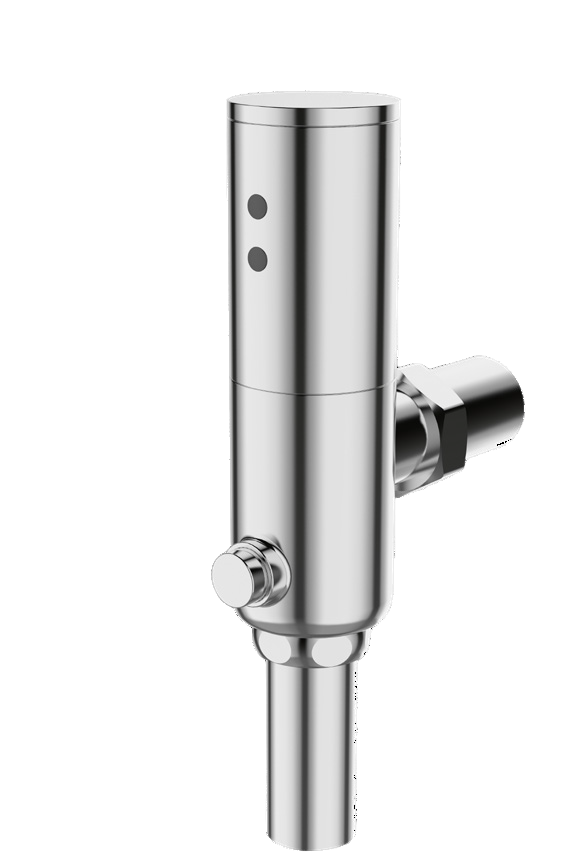 Кран для смыва писсуара с внешней подводкой воды. Оборудован световым сенсором, а также кнопкой для принудительного смыва. Работает от батареек.
