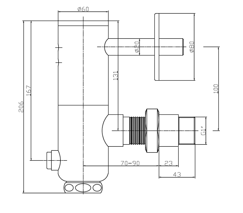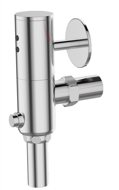 Кран для смыва писсуара с внешней подводкой воды. Оборудован световым сенсором, а также кнопкой для принудительного смыва. Работает от сети.