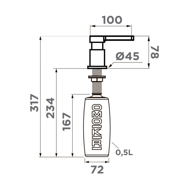 Omoikiri OM-04 Дозатор для кухни, цвет: графит 4995052 и другие сантехнические изделия бренда характеризует надежность, высокое качество и продолжительный срок службы. Изделие впечатляюще будет смотреться в различных цветовых решениях помещения.