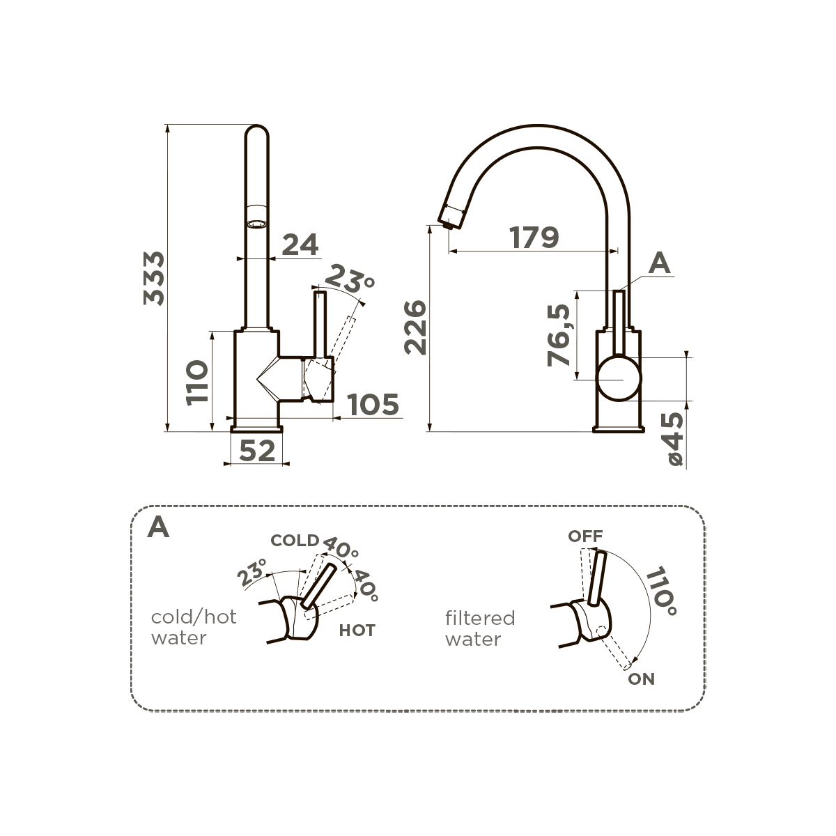 • Новая удобная технология системы ручки "2 в 1 Multi" - позволяет переключить с водопроводной на фильтрованную воду в одно касание;