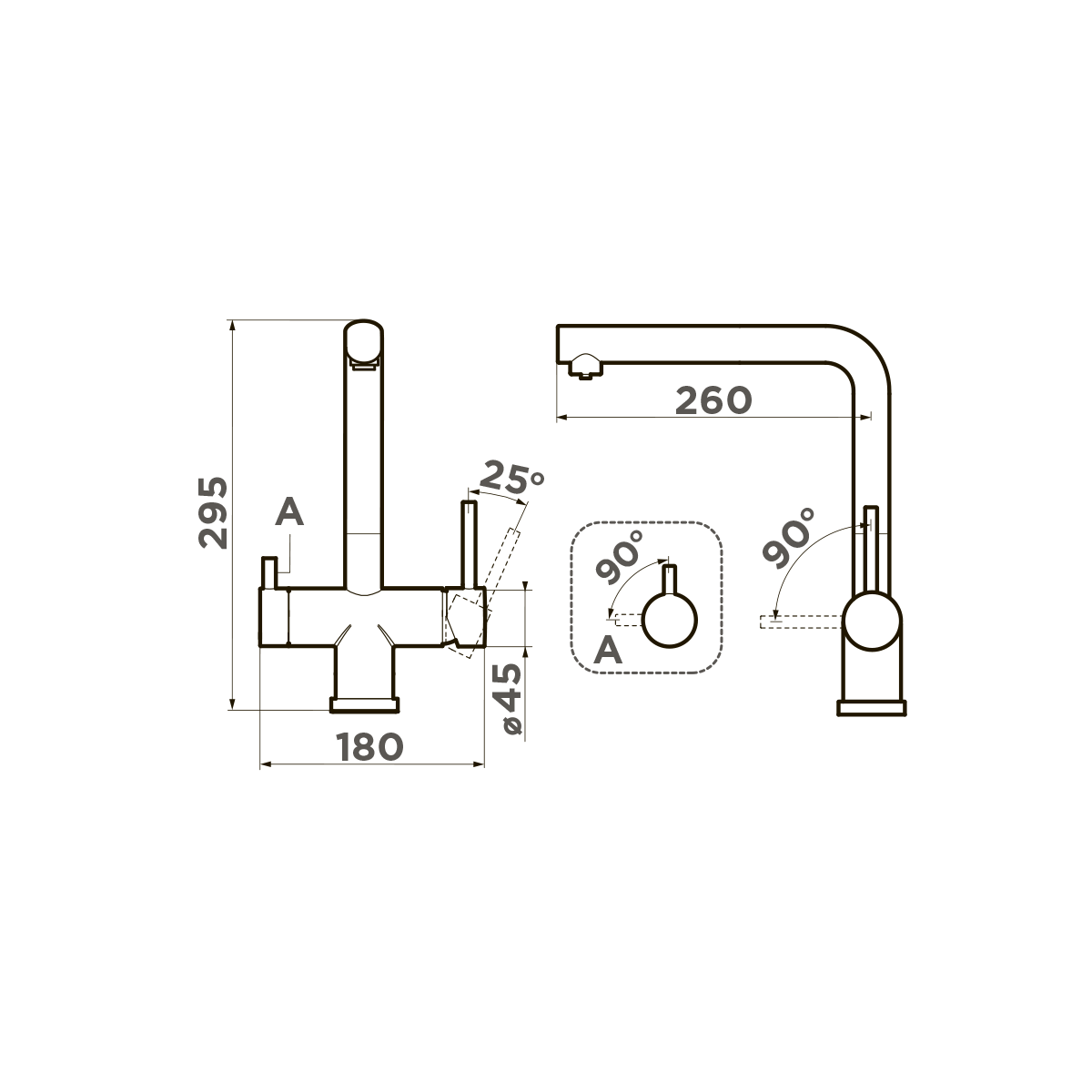 • Высокий излив обеспечивает максимально удобное использование смесителя;