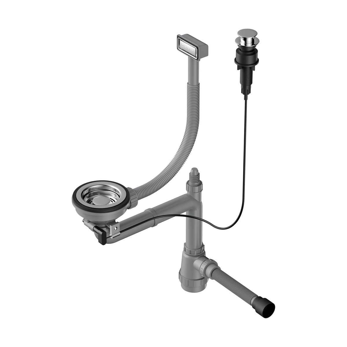 • Арматура с клапаном-автоматом для одночашевых моек с прямоугольным переливом и декоративным элементом для корзины;
