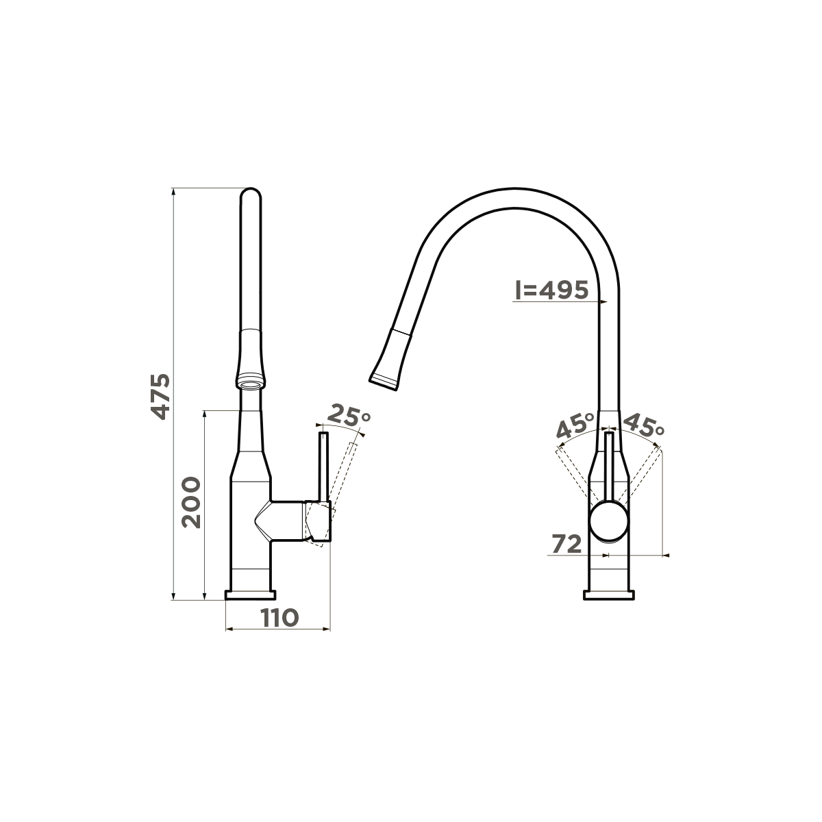 Omoikiri Yatomi-BN-BL Смеситель для кухни, с гибким изливом, цвет: нержавеющая сталь/черный 4994247 и другие сантехнические изделия бренда характеризует надежность, высокое качество и продолжительный срок службы. Изделие в стилистике лофт впечатляюще будет смотреться в различных цветовых решениях помещения.