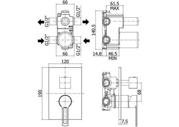 Paffoni Ringo Смеситель встраиваемый для душа на 2 выхода с накладкой, цвет: черный мат. RIN018NO/M и другие сантехнические изделия бренда характеризует надежность, высокое качество и продолжительный срок службы. Изделие в стилистике минимализм впечатляюще будет смотреться в различных цветовых решениях помещения.