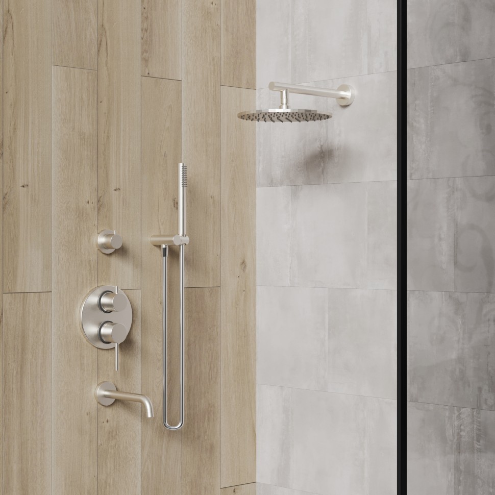 Paini Cox Термостат для ванны встраиваемый, на 2 потребителя, с внутренней частью, цвет: никель браш 78PW6911 и другие сантехнические изделия бренда характеризует надежность, высокое качество и продолжительный срок службы. Изделие в стилистике минимализм впечатляюще будет смотреться в различных цветовых решениях помещения.