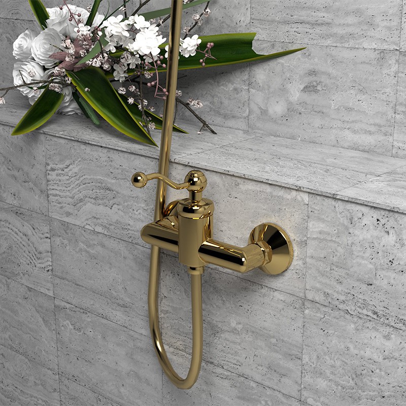 Paini Duomo Смеситель для душа на 2 отверстия без излива, цвет: золото глянцевое 88OP511 и другие сантехнические изделия бренда характеризует надежность, высокое качество и продолжительный срок службы. Изделие в стилистике английская классика впечатляюще будет смотреться в различных цветовых решениях помещения.