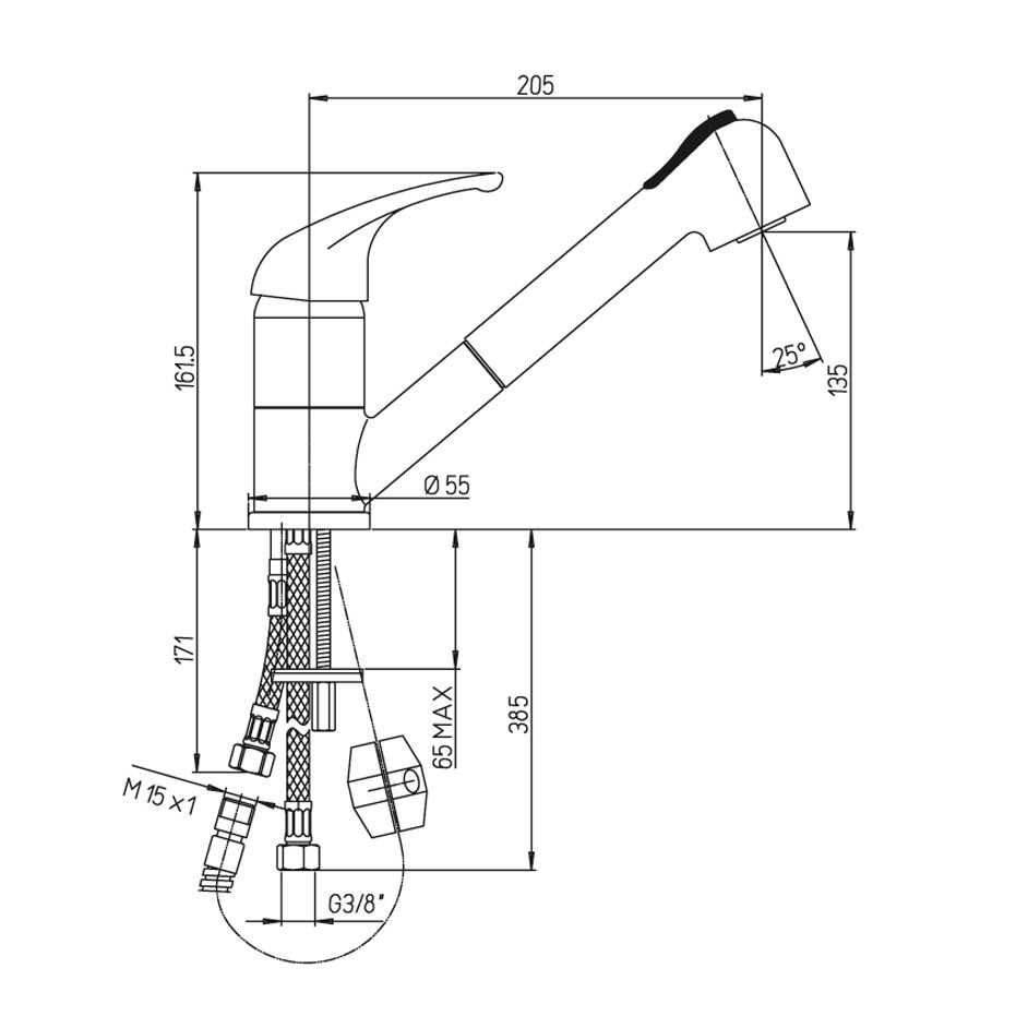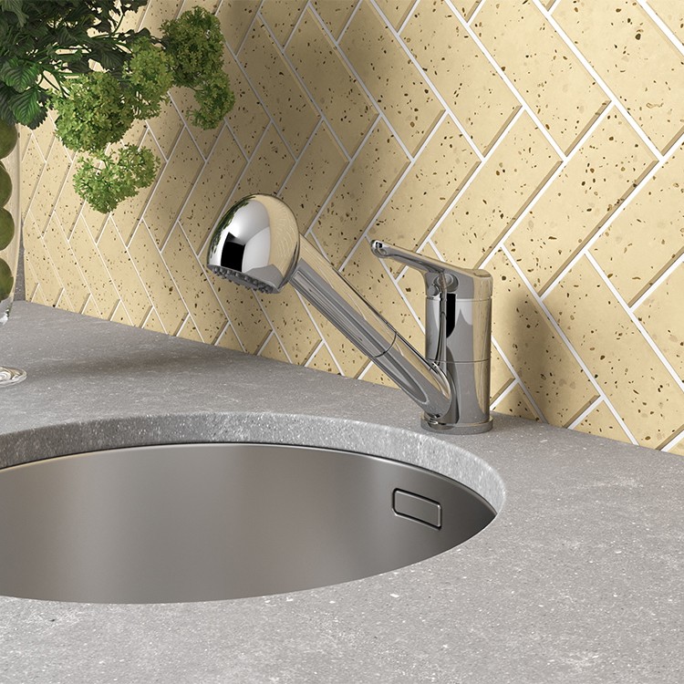 Paini Pilot Смеситель для кухни с выдвижным изливом, длина излива 20,5 см, цвет: хром 04CR568RU и другие сантехнические изделия бренда характеризует надежность, высокое качество и продолжительный срок службы. Изделие в стилистике минимализм впечатляюще будет смотреться в различных цветовых решениях помещения.