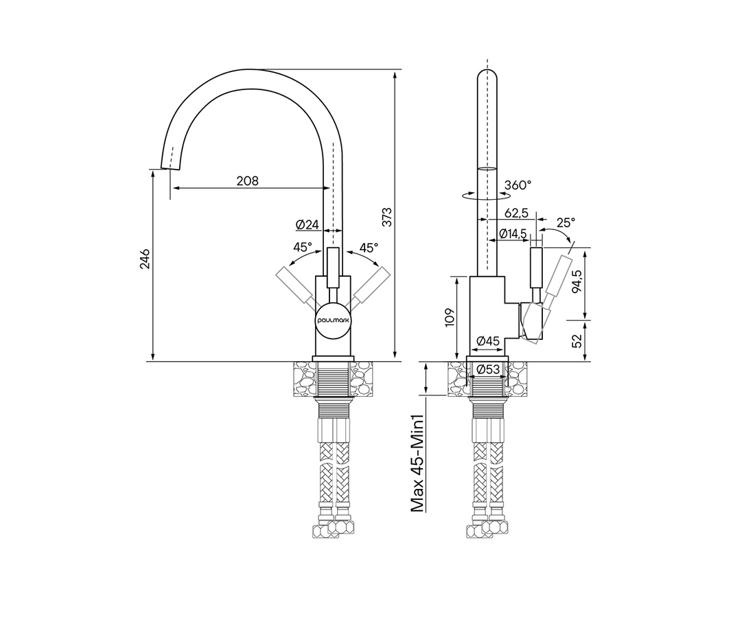 Paulmark Holstein Смеситель для кухни, цвет: бежевый Ho212063-BE и другие сантехнические изделия бренда характеризует надежность, высокое качество и продолжительный срок службы. Изделие в стилистике минимализм впечатляюще будет смотреться в различных цветовых решениях помещения.