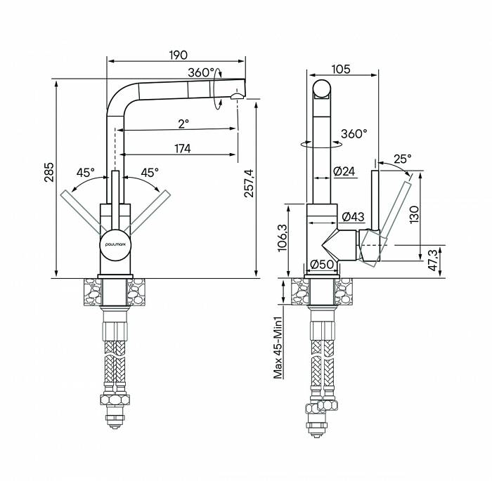Paulmark Honner Смеситель для кухни высота излива 25,7 см, цвет: хром Ho212018-CR и другие сантехнические изделия бренда характеризует надежность, высокое качество и продолжительный срок службы. Изделие в стилистике hi-tech впечатляюще будет смотреться в различных цветовых решениях помещения.