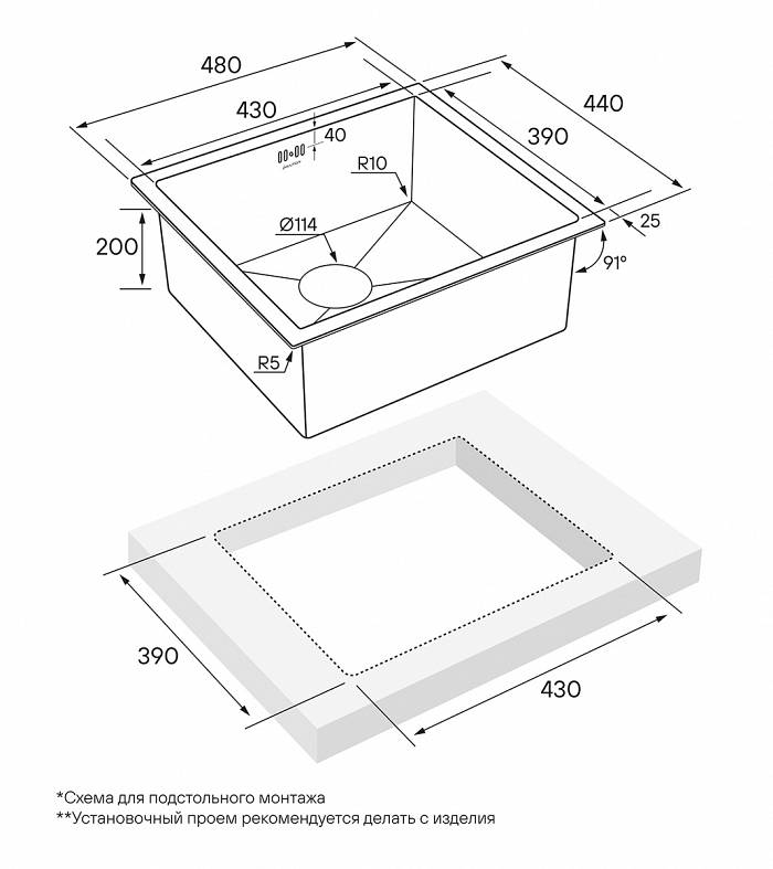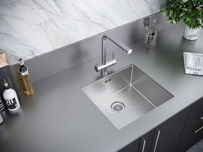 Paulmark Marx Кухонная мойка нержавеющая сталь 48x44 см, цвет: брашированная сталь PM214844-BS и другие сантехнические изделия бренда характеризует надежность, высокое качество и продолжительный срок службы. Изделие в стилистике hi-tech впечатляюще будет смотреться в различных цветовых решениях помещения.