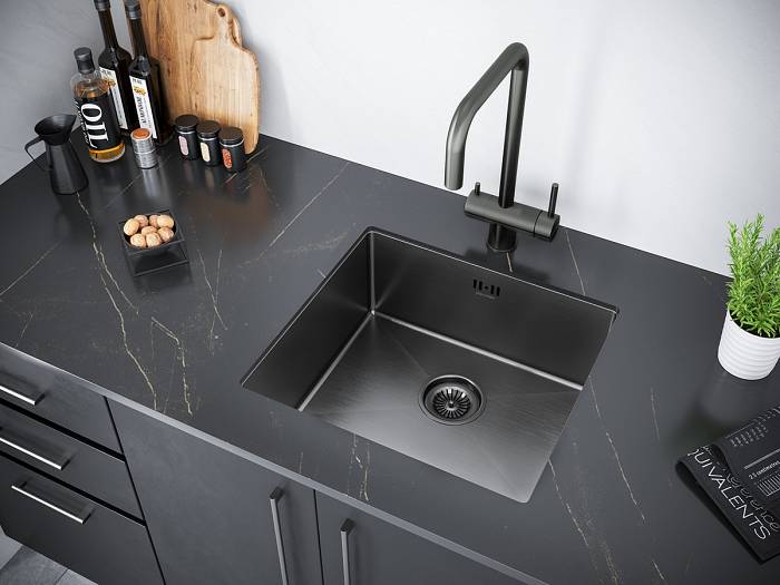 Paulmark Marx Кухонная мойка нержавеющая сталь 48x44 см, цвет: вороненая сталь PM214844-GM и другие сантехнические изделия бренда характеризует надежность, высокое качество и продолжительный срок службы. Изделие в стилистике hi-tech впечатляюще будет смотреться в различных цветовых решениях помещения.