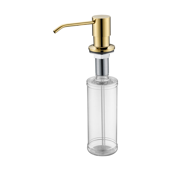 Paulmark Rein Дозатор для жидкого мыла встраиваемый латунь, цвет: золото D002-G и другие сантехнические изделия бренда характеризует надежность, высокое качество и продолжительный срок службы. Изделие в стилистике лофт впечатляюще будет смотреться в различных цветовых решениях помещения.