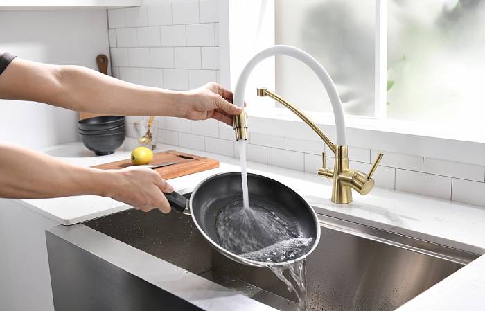 Paulmark Siеgen Смеситель для кухни с гибким изливом, цвет: бронза-белый Si213111-BrW и другие сантехнические изделия бренда характеризует надежность, высокое качество и продолжительный срок службы. Изделие в стилистике лофт впечатляюще будет смотреться в различных цветовых решениях помещения.
