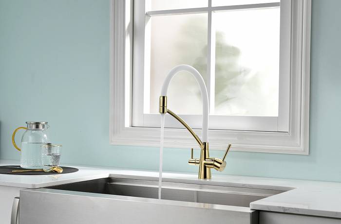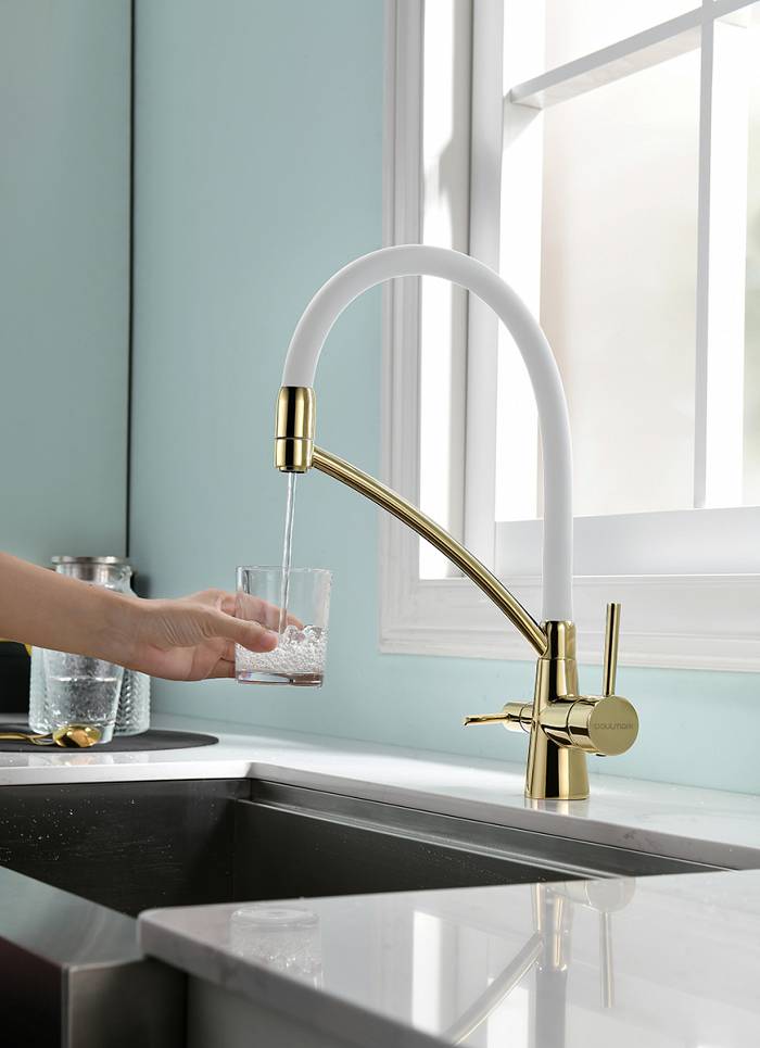 Paulmark Siеgen Смеситель для кухни с гибким изливом, цвет: золото-белый Si213111-GW и другие сантехнические изделия бренда характеризует надежность, высокое качество и продолжительный срок службы. Изделие в стилистике лофт впечатляюще будет смотреться в различных цветовых решениях помещения.