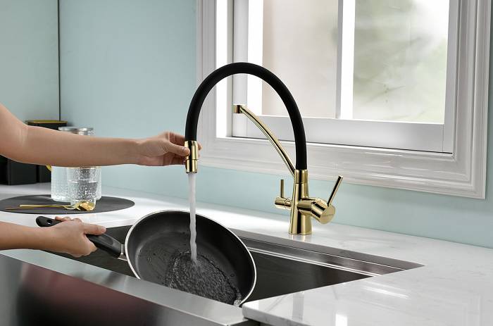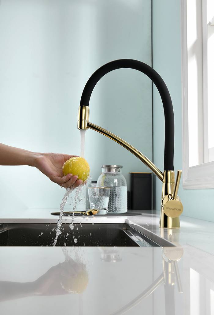 Paulmark Siеgen Смеситель для кухни с гибким изливом, цвет: золото Si213111-G и другие сантехнические изделия бренда характеризует надежность, высокое качество и продолжительный срок службы. Изделие в стилистике лофт впечатляюще будет смотреться в различных цветовых решениях помещения.