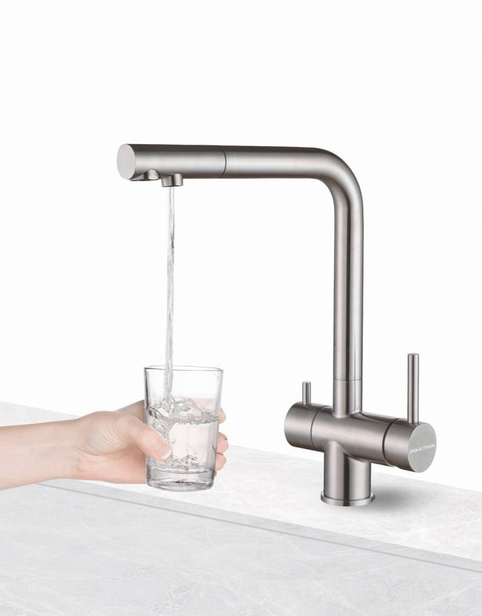 Paulmark Skalen Смеситель для кухни высота излива 29,8 см, цвет: нержавеющая сталь Sk213020-SS и другие сантехнические изделия бренда характеризует надежность, высокое качество и продолжительный срок службы. Изделие в стилистике hi-tech впечатляюще будет смотреться в различных цветовых решениях помещения.