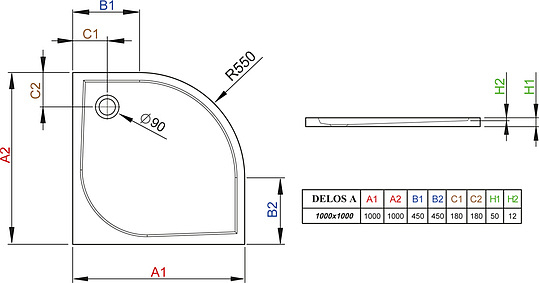 Radaway Delos A Душевой поддон из акрила, 100х100х5h см, цвет: белый глянцевый SDA1010-01 и другие сантехнические изделия бренда характеризует надежность, высокое качество и продолжительный срок службы. Изделие в стилистике минимализм впечатляюще будет смотреться в различных цветовых решениях помещения.