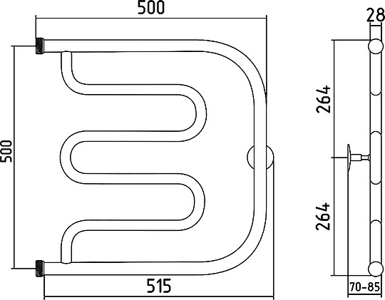 Стилье Тандем Полотенцесушитель водяной для ГВС 51,5x52,8h см, цвет: без покрытия 00011-5050 и другие сантехнические изделия бренда характеризует надежность, высокое качество и продолжительный срок службы. Изделие в стилистике минимализм впечатляюще будет смотреться в различных цветовых решениях помещения.