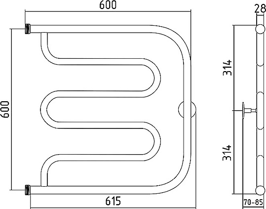 Стилье Тандем Полотенцесушитель водяной для ГВС 61,5x62,8h см, цвет: без покрытия 00011-6060 и другие сантехнические изделия бренда характеризует надежность, высокое качество и продолжительный срок службы. Изделие в стилистике минимализм впечатляюще будет смотреться в различных цветовых решениях помещения.