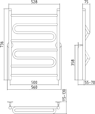 Закажите Стилье Универсал-51 Полотенцесушитель водяной для ГВС 56x73,6h см, цвет: без покрытия 00651-8050 от производителя Стилье, коллекция Универсал-51 в салоне европейской сантехники Дизайн Сантехники с быстрой доставкой по Москве. Представлены подробные характеристики и фотографии, которые позволят сделать правильный выбор и заказать товар.