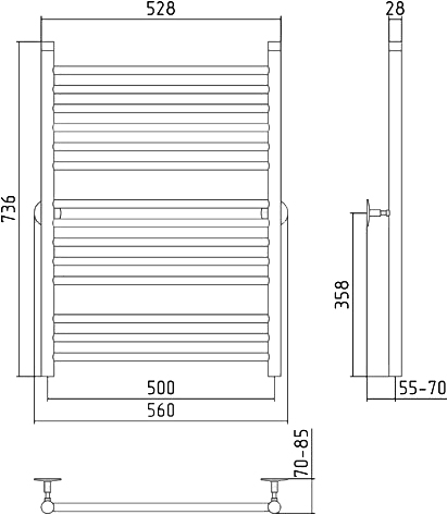 Стилье Универсал-53 Полотенцесушитель водяной для ГВС 56x73,6h см, цвет: без покрытия 00653-8050 и другие сантехнические изделия бренда характеризует надежность, высокое качество и продолжительный срок службы. Изделие в стилистике минимализм впечатляюще будет смотреться в различных цветовых решениях помещения.