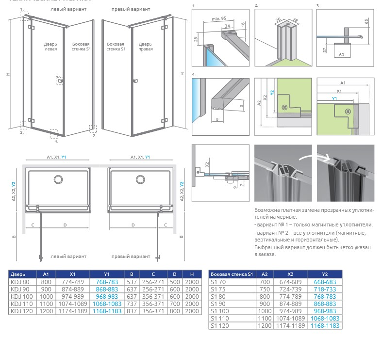 В заказе надо указать 3 номера артикулов: фронтальной части (2 номера) и боковой стенки S1.