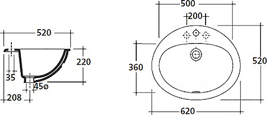 Galassia Eloise Раковина встраиваемая сверху 62х52 см, с переливом, цвет: белый глянцевый 6001 и другие сантехнические изделия бренда характеризует надежность, высокое качество и продолжительный срок службы. Изделие в стилистике арт-деко впечатляюще будет смотреться в различных цветовых решениях помещения.