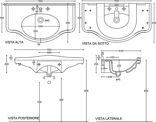 Galassia Ethos Раковина подвесная 95х44 см, с переливом и 3 отв. под смеситель, цвет: белый глянец 8434 и другие сантехнические изделия бренда характеризует надежность, высокое качество и продолжительный срок службы. Изделие в стилистике английская классика впечатляюще будет смотреться в различных цветовых решениях помещения.