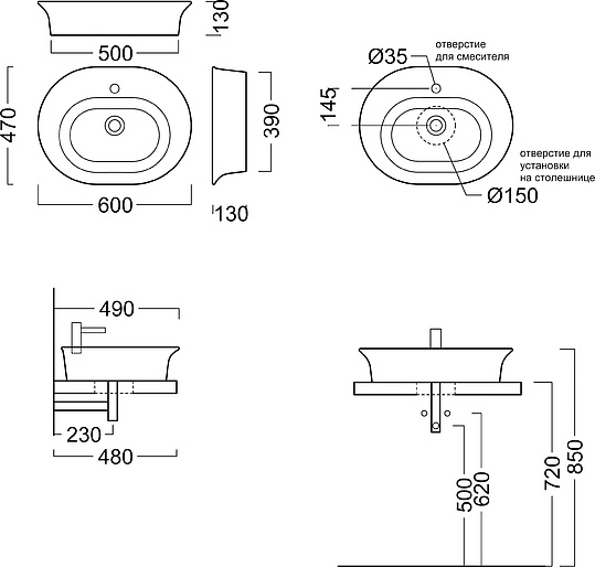 Kerama Marazzi Canaletto Раковина чаша 60x46x13h см с 1 отверстием, цвет: белый CN.wb.60 и другие сантехнические изделия бренда характеризует надежность, высокое качество и продолжительный срок службы. Изделие в стилистике арт-деко впечатляюще будет смотреться в различных цветовых решениях помещения.