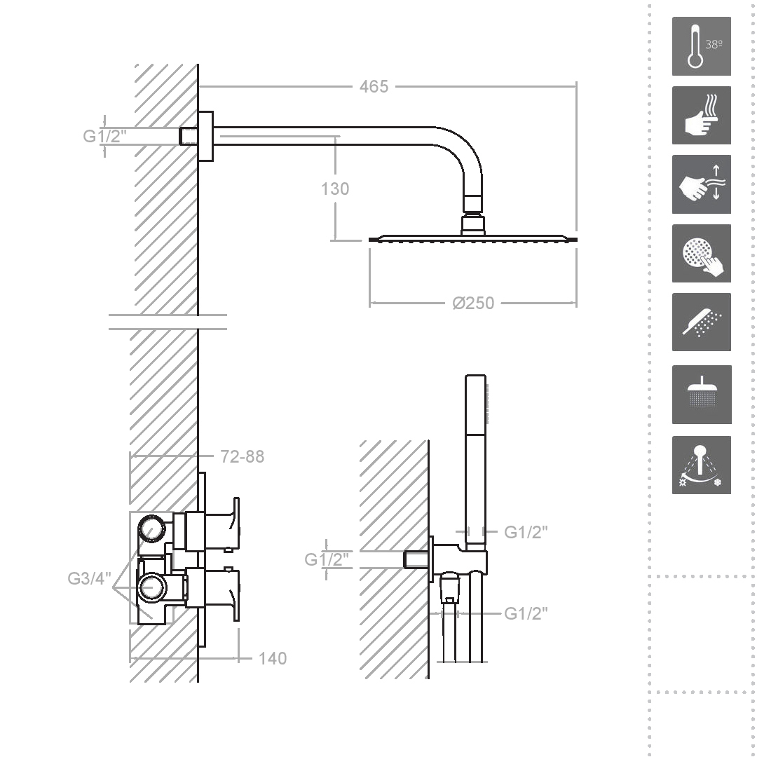 Ramonsoler Alexia Душевой комплект встраиваемый с термостатом, цвет: золото брашированное K3687011OC и другие сантехнические изделия бренда характеризует надежность, высокое качество и продолжительный срок службы. Изделие в стилистике минимализм впечатляюще будет смотреться в различных цветовых решениях помещения.