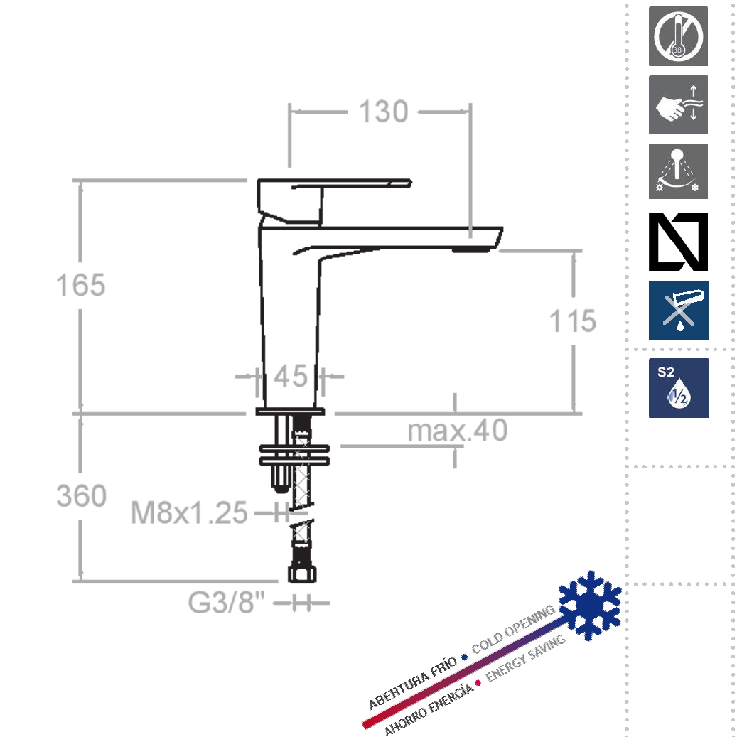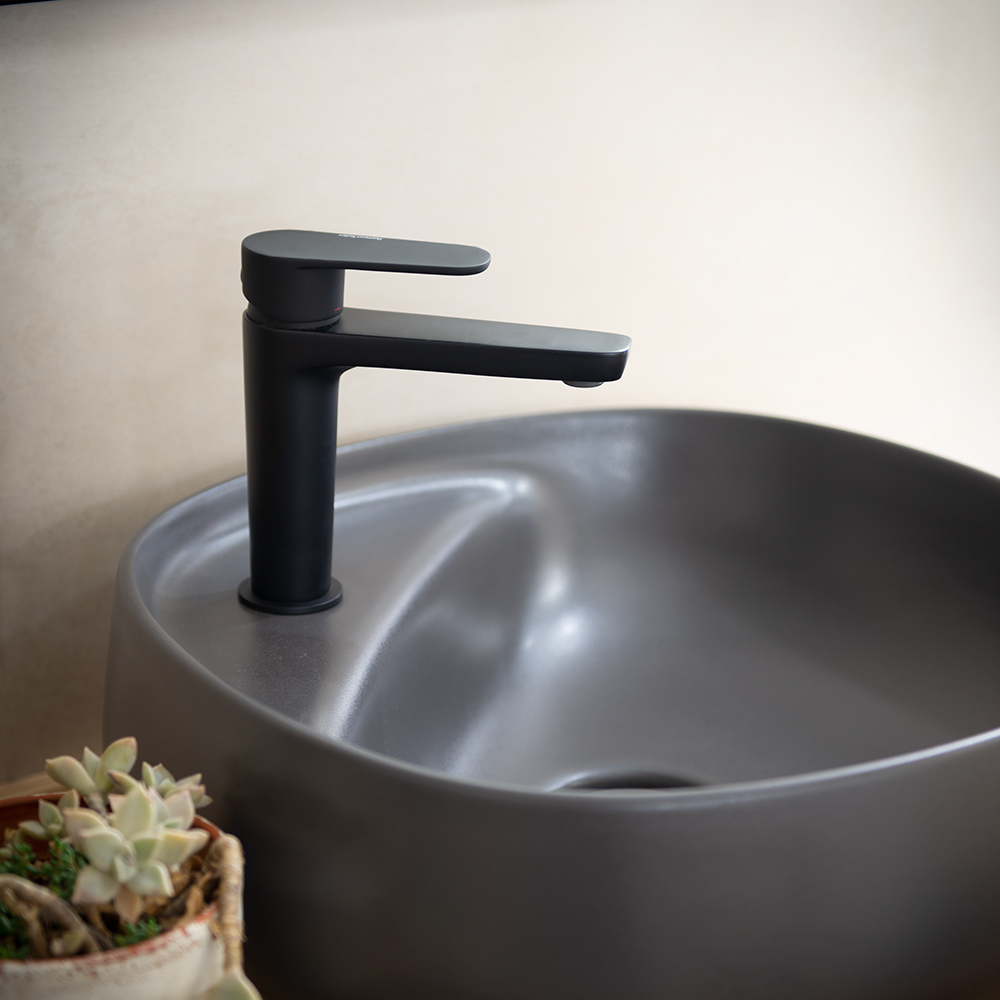 Ramonsoler Alexia Смеситель для раковины однорычажный, цвет: матовый черный 3604NM и другие сантехнические изделия бренда характеризует надежность, высокое качество и продолжительный срок службы. Изделие в стилистике минимализм впечатляюще будет смотреться в различных цветовых решениях помещения.