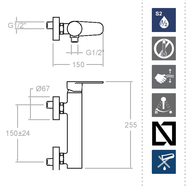 Ramonsoler Alexia Смеситель настенный с душем, цвет: хром 3608TR и другие сантехнические изделия бренда характеризует надежность, высокое качество и продолжительный срок службы. Изделие в стилистике минимализм впечатляюще будет смотреться в различных цветовых решениях помещения.