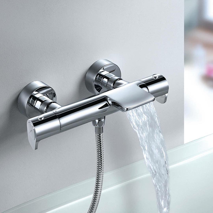 Ramonsoler Alexia Термостатический смеситель настенный с каскадным изливом, цвет: хром 363901S и другие сантехнические изделия бренда характеризует надежность, высокое качество и продолжительный срок службы. Изделие в стилистике минимализм впечатляюще будет смотреться в различных цветовых решениях помещения.