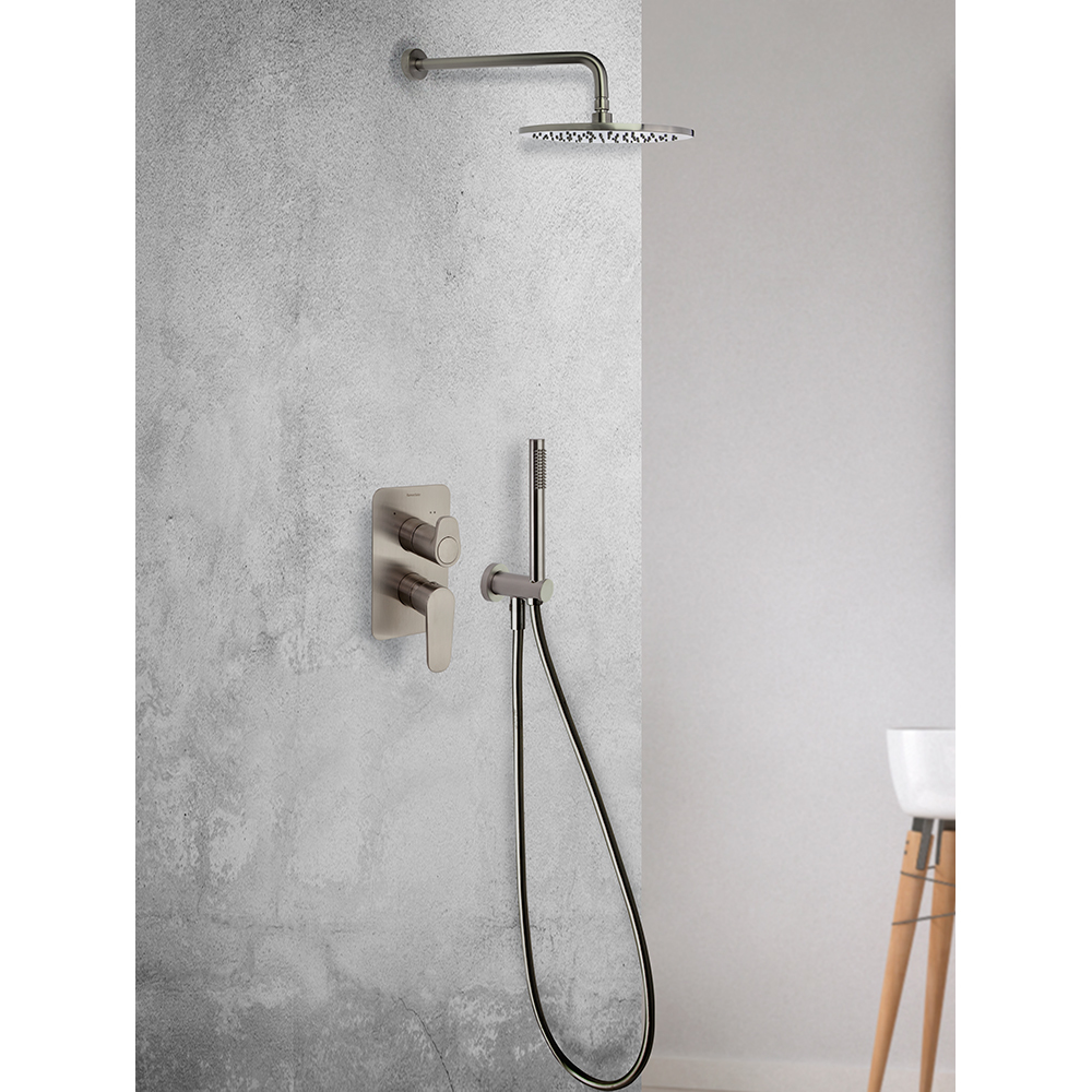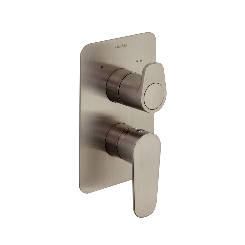 Ramonsoler Alexia Встраиваемый смеситель на 2 потребителя, цвет: никель брашированный 361502SNC и другие сантехнические изделия бренда характеризует надежность, высокое качество и продолжительный срок службы. Изделие в стилистике минимализм впечатляюще будет смотреться в различных цветовых решениях помещения.