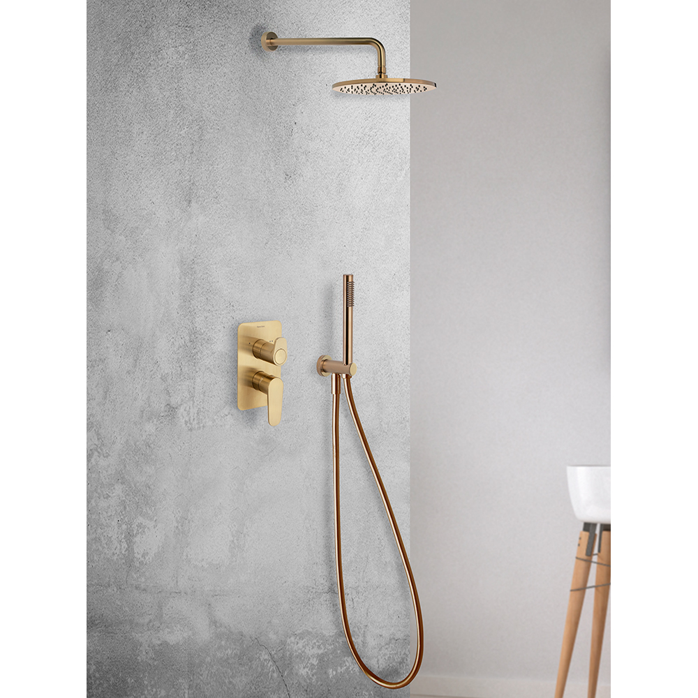 Ramonsoler Alexia Встраиваемый смеситель на 2 потребителя, цвет: золото брашированное 361502SOC и другие сантехнические изделия бренда характеризует надежность, высокое качество и продолжительный срок службы. Изделие в стилистике минимализм впечатляюще будет смотреться в различных цветовых решениях помещения.