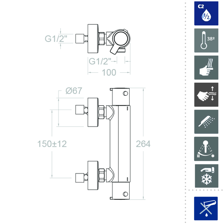 Ramonsoler Blautherm Термостатический смеситель настенный, цвет: хром 943402S и другие сантехнические изделия бренда характеризует надежность, высокое качество и продолжительный срок службы. Изделие в стилистике минимализм впечатляюще будет смотреться в различных цветовых решениях помещения.