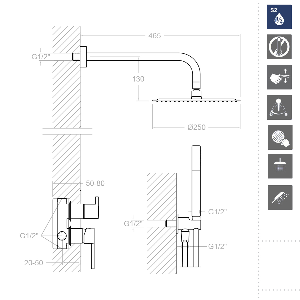 Закажите Ramonsoler Drako Душевой комплект встраиваемый с тропическим душем, цвет: хром K3315021 от производителя Ramonsoler, коллекция Drako в салоне европейской сантехники Дизайн Сантехники с быстрой доставкой по Москве. Представлены подробные характеристики и фотографии, которые позволят сделать правильный выбор и заказать товар.