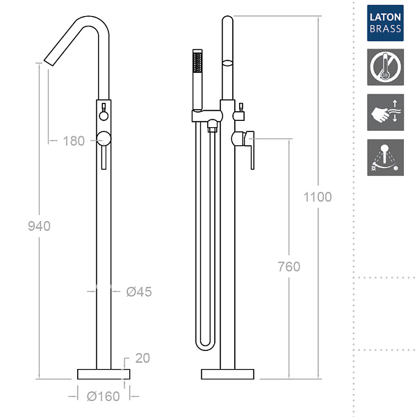 Ramonsoler Drako Напольный однорычажный смеситель для ванны, цвет: хром 338503S и другие сантехнические изделия бренда характеризует надежность, высокое качество и продолжительный срок службы. Изделие в стилистике минимализм впечатляюще будет смотреться в различных цветовых решениях помещения.
