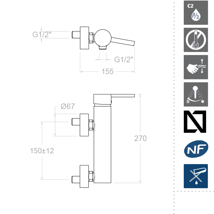 Ramonsoler Drako Смеситель настенный однорычажный, цвет: хром 3308S и другие сантехнические изделия бренда характеризует надежность, высокое качество и продолжительный срок службы. Изделие в стилистике минимализм впечатляюще будет смотреться в различных цветовых решениях помещения.