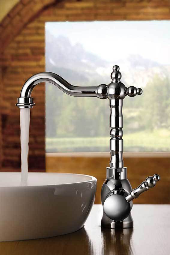 Ramonsoler Gaudi Смеситель для раковины высокий однорычажный, цвет: хром 3029 и другие сантехнические изделия бренда характеризует надежность, высокое качество и продолжительный срок службы. Изделие в стилистике минимализм впечатляюще будет смотреться в различных цветовых решениях помещения.